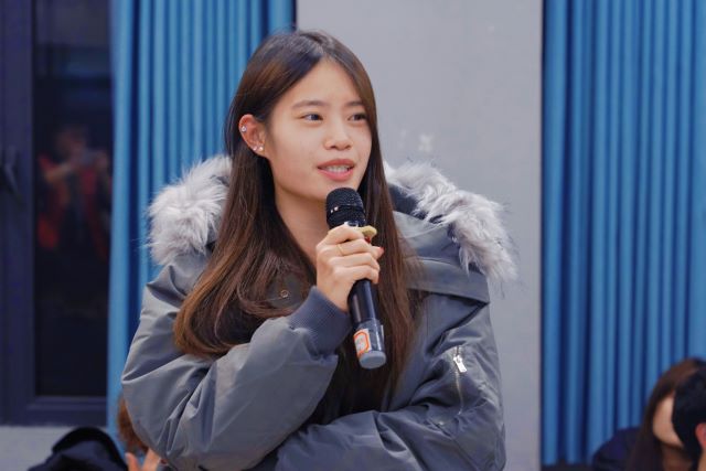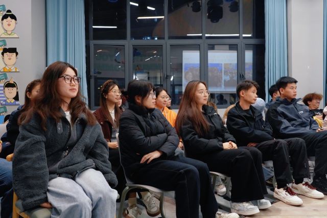 薪火相传,寄语未来。分享临近尾声,面对同学们热切的目光,杨洋现场献唱原创说唱,以“落叶染黄凋谢,年轮一圈圈扩大岁月交接”的细腻歌词,勾勒出生活与创作的深度联结。针对同学们的热情发问,他真诚支招:“多听充满希望的音乐调节心态”“在不同场景选择适配的旋律”,更以“不被定义,做最好的自己”的寄语鼓舞在场每一个人。最后,他向大家发出诚挚邀约,欢迎加入花儿合唱团,让青春在歌声中绽放最美光彩。