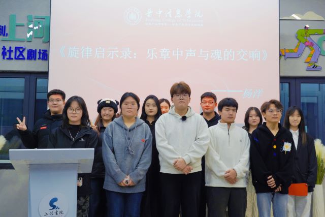 1月11日19:00,名师课堂办公室于上河书院204圆心·青春社区剧场,如期开启“我是名师”学生系列第五十一讲——《旋律的启示录:乐章中声与魂的交响》。本次讲座特邀信息工程学院学生杨洋主讲,身为大学生艺术团花儿合唱团与spotlight说唱社的双料成员,他以热爱为翼、旋律为径,深耕作词与演唱领域,不仅斩获第十五届“ONE有引力”校园歌手大赛季军及最佳创意奖,更在多元舞台绽放独特光彩。作为花儿合唱团核心成员,他曾登上“黄河回响”两岸音乐会舞台,与世界级钢琴大师郎朗、中国音乐学院院长李心草同台献艺;亦曾携手“盲人钢琴家”刘浩温情合作,让音乐成为传递温暖与力量的桥梁。