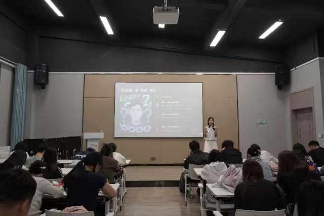 讲座伊始,李雪以自身经历切入,娓娓讲述了一路走来的成长蜕变。曾经的她性格内向腼腆,每逢登台发言便紧张局促、大脑空白、声音发抖。即便拥有播音主持基础,在视频录制、旁白配音等场景中也屡屡受挫。步入大一下学期,她临危受命主持社团换届大会,凭借充分的前期准备与积极的心理暗示顺利完成任务,成功迈出突破自我的关键一步。此后,她积极参与各类主持活动与答辩展示,任职学生组织负责人后,活动统筹、沟通协调能力稳步提升,逐步成长为处事从容、独当一面的骨干力量。她用亲身经历印证:勇于跳出舒适圈、坚持实践历练,便能打破怯场桎梏,实现逆风成长。