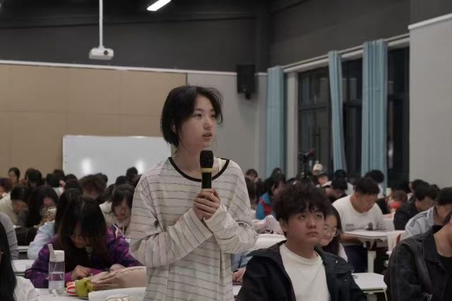 整场分享真挚恳切,李雪完整讲述了自己从登台怯语、不善表达,到从容统筹活动、高效对接工作的蜕变历程,真实鲜活的成长故事引发在场学子强烈共鸣。互动答疑环节,同学们踊跃提问,围绕克服怯场、能力培养、成长规划等问题积极交流。李雪逐一耐心解答,结合自身感悟给出中肯建议,鼓励大家屏蔽负面声音、强化正向暗示、坚持长期练习、锚定成长目标,为同学们突破表达困境、全方位提升综合素养指明方向。