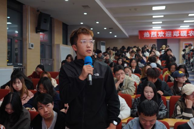学沟通修德行,传正能暖人心。结合国际交流经历,郑砚农老师提出“让别人舒服是最好的礼仪”,倡导青年做“阳光、善解人意、诚实守信”的人。他借倪光南院士牢记18年未见友人的细节、卢燕女士合影时注重形象的严谨、阿里CEO对“阳光青年”的青睐,强调正能量是职场竞争的隐形优势。互动环节,面对“如何避免集体焦虑”“怎样高效沟通”等问题,郑老师一一进行耐心解答,他建议学子用哲学思维定坐标、以换位思考谋共识,在他人期待与自我需求间找到平衡。讲座尾声,郑老师借霍金“永保好奇,永远前进”的寄语勉励学子:在不确定性的时代,红利消失时唯有创新可突围,青年唯有持续学习、直面未知,才能在不确定性中把握确定”。