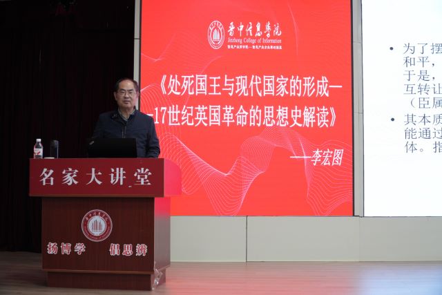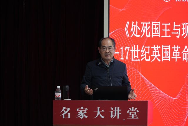 谈及英国革命的关键节点,李教授着重对查理一世被审判处死这一标志性事件展开细致解读,挖掘其对现代政治转型的深层影响。李教授指出,1649年英国议会组建特别法庭审判查理一世,审判中,约翰·库克以“英国人民名义”起诉国王,打破“君权神授”光环,让“人民意志”主导对抗王权。李教授强调,霍布斯、洛克的理论是现代国家基石——前者论证国家为人民契约的“抽象人格”,后者明确天赋人权并主张人民有权反抗违约政府。这让在场师生刷新对英国革命的认知,深化对现代政治文明的理解。